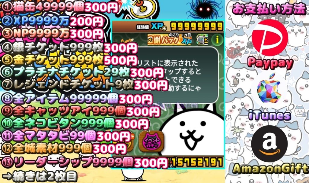 猫缶やチケットは大人気です。BAN保証は対応しておりませんがその分安全に出来るようにアイテム数に制限をかけております🌟